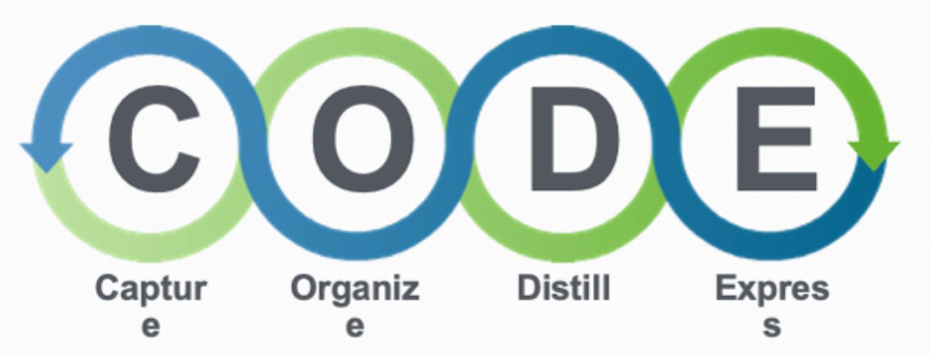 The last post My experience with "Building a Second Brain" #1 ended with the three basic steps of Collect, Network and Create. C.O.D.E is the evolution of these three basic steps.