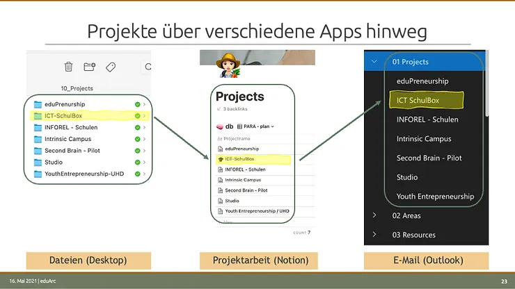 There are also exceptions. If, for example, I have a project that is implemented exclusively via an e-mail exchange, then I do not need to create this project in my file storage or note app, or if it becomes necessary, this can be done quickly. It is precisely this flexibility, combined with the four intuitively implementable structural levels - projects, workspaces, resources and archive - that makes the method reliable and fun for me.